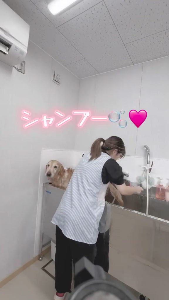 被毛が豊かなゴールデンレトリバーなどは皮膚の通気性管理が命です。月1回のシャンプー(清潔管理)に加え、専用のブロワーとドライヤーを使用して半乾きを徹底的に防ぎます。