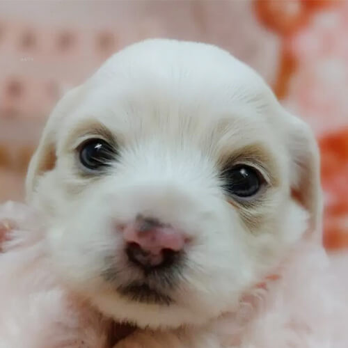 犬種:チワックス(チワワ×ダックスフンド) 毛色:ホワイト&クリーム 生年月日:3月24日 性別:女の子 特徴:優しいカラーでとても可愛いです✨