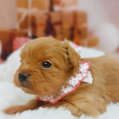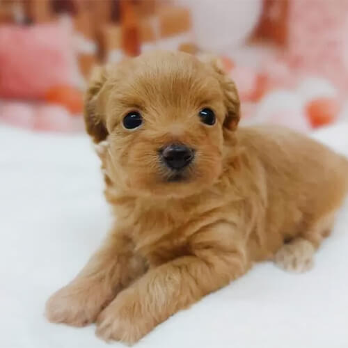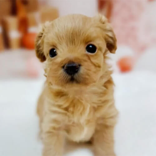 犬種:チワプー(チワワ×トイプードル) 毛色:レッド 生年月日:1月14日 性別:男の子 特徴:愛らしいお顔でとても可愛いです☺️