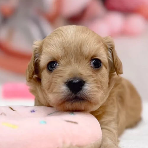 犬種:チワプー(チワワ×トイプードル) 毛色:レッド 生年月日:11月23日 性別:男の子 特徴:おめめパッチリの男の子😊