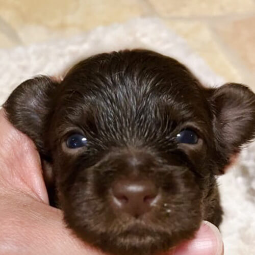犬種:チワプー (チワワ×プードル) 毛色:ブラウン 生年月日:2月27日 性別:男の子 特徴:濃いめブラウンカラー^ – ^