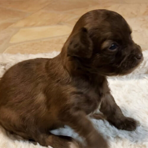 犬種:チワプー (チワワ×プードル) 毛色:ブラウン 生年月日:2月27日 性別:女の子 特徴:薄めのブラウンカラー^ – ^