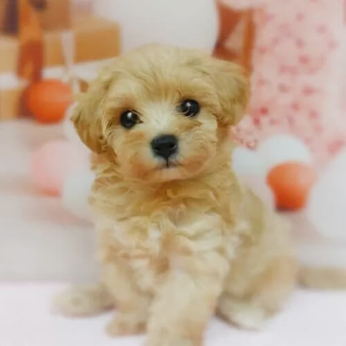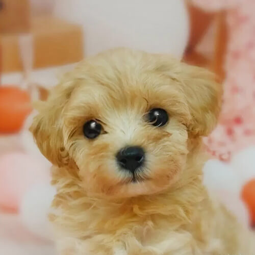 犬種:マルプー(マルチーズ×トイプードル) 毛色:アプリコット 生年月日:5月31日 性別:男の子 特徴:キラキラおめめの可愛いマルプーちゃんです😌